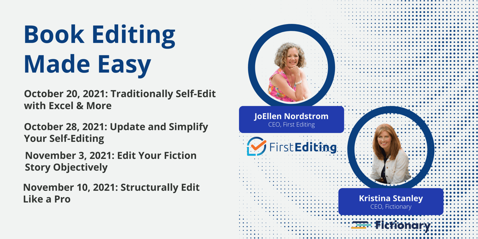 In this webinar, we discovered the behind-the-scenes methods used by a professional editor so that you can begin self-editing. We also learned how to use an objective checklist to conduct a comprehensive structural edit.