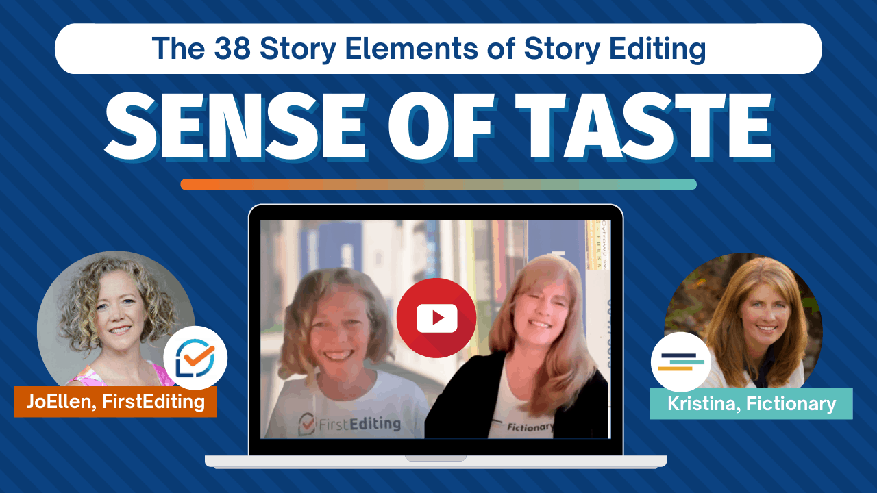 JoEllen: I am here with Kristina Stanley from the Fictionary and we are going through the 38 story elements as we work through self-editing and how it can help you become a better writer and more successful publishing I guess you know self-publishing, whatever you’re going to do there.